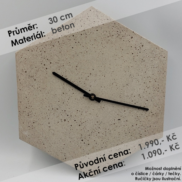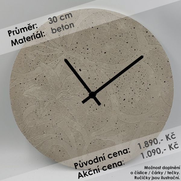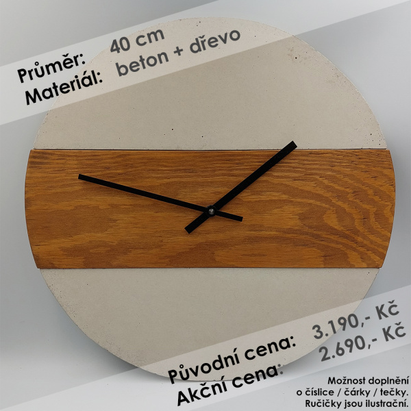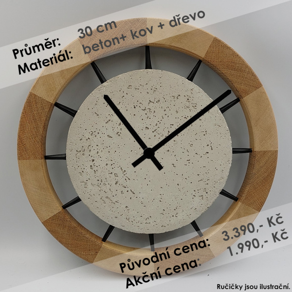 Nástěnné a stolní hodiny z betonu a dřeva ve výprodeji