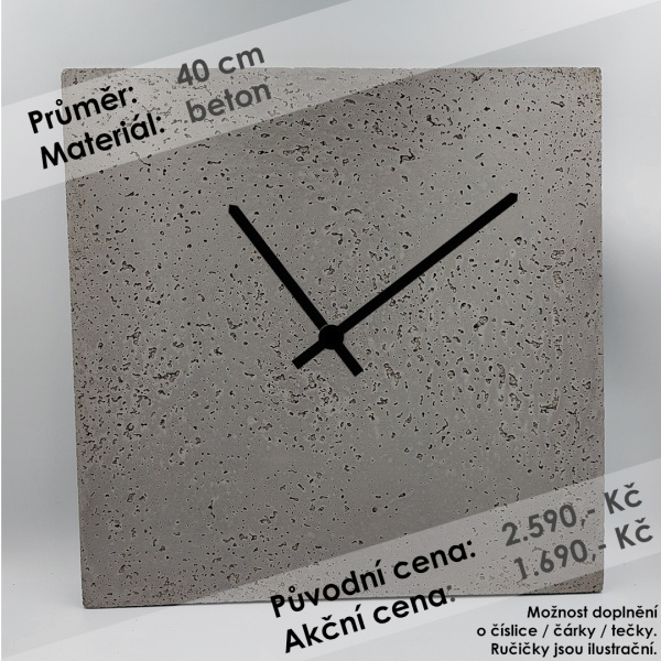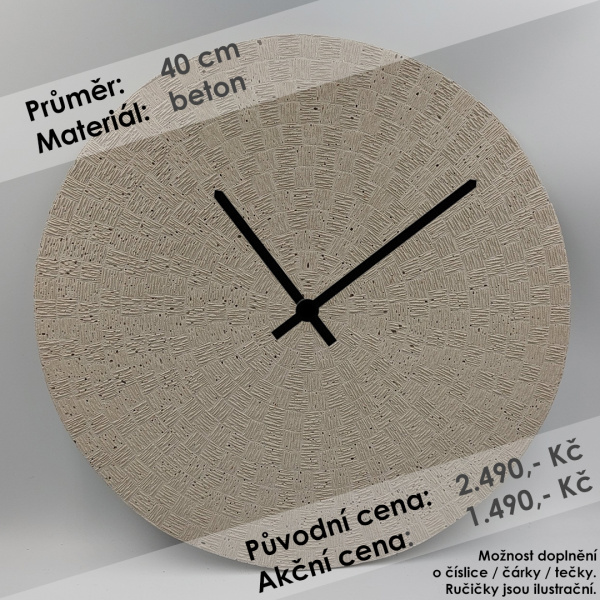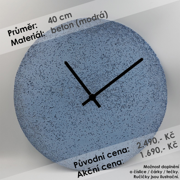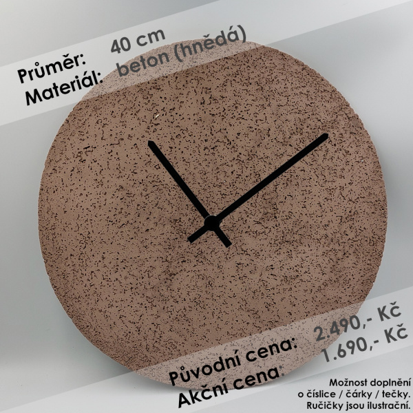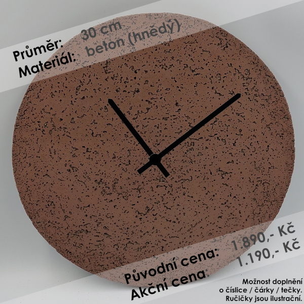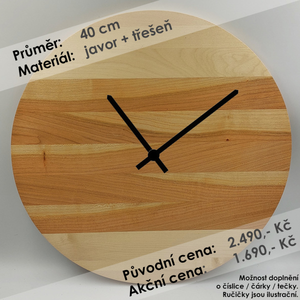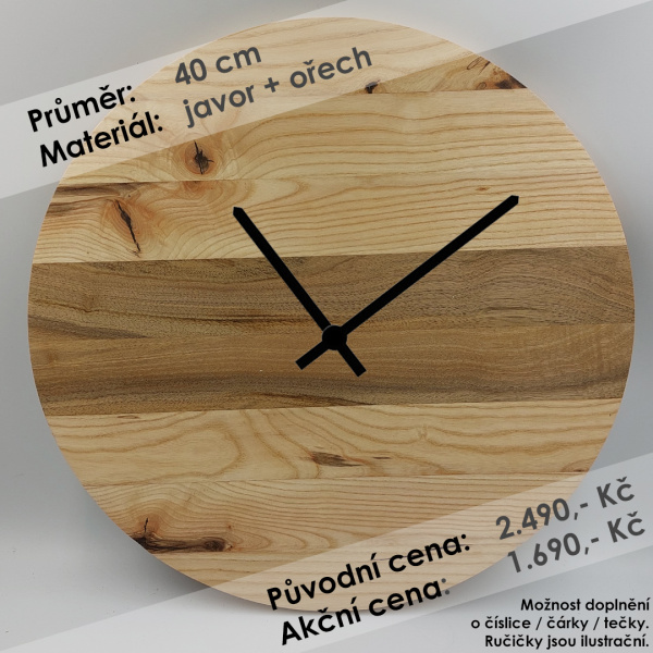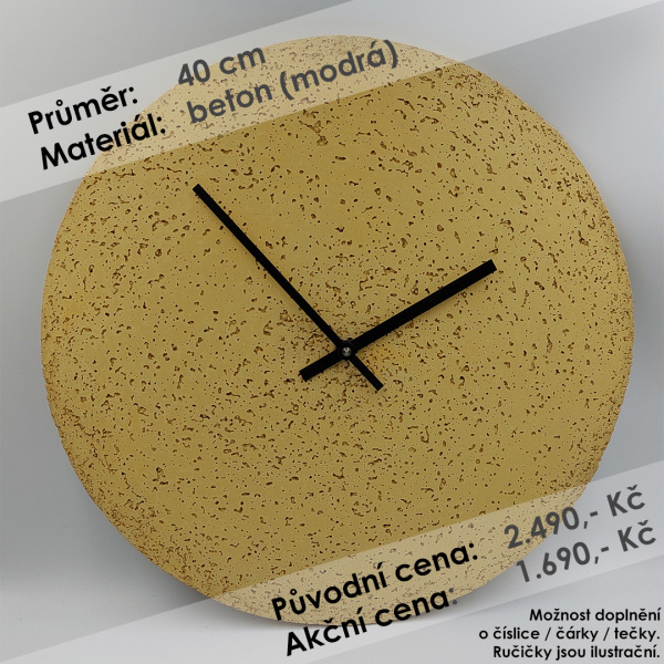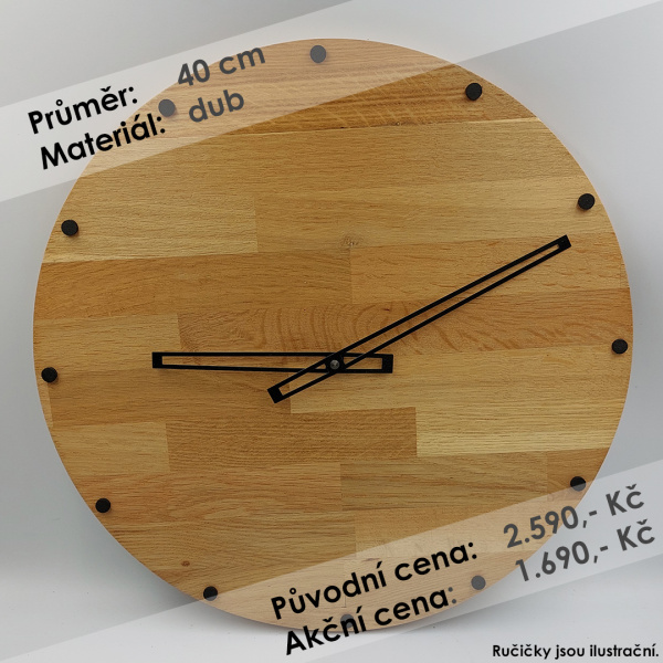 Pozn.: Mohlo se stát, že ceny u níže uvedených nástěnných hodin jsou rozdílné, než v hlavní části eshopu. A je to správně, v eshopu je myšleno na novou zakázkovou výrobu. Níže jsou ciferníky již hotové, připravené k odeslaní tak jak jsou (eventuálně na přání lze vyměnit ručičky nebo dolepit číslice, čárky nebo jiné zobrazení času.
