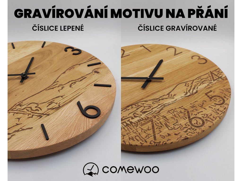 - základní hodiny lze různě "dozdobit" na přání (firemní logo, gravírovaný motiv nebo kresba dle zaslaných podkladů)